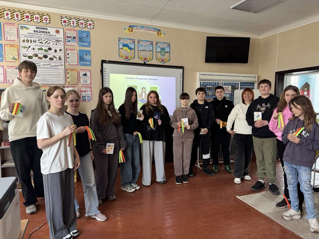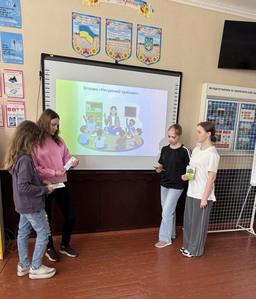 Під час зустрічі восьмикласники розібрали види насильства та способи протидії йому. На практиці учні вчилися розрізняти тривожні сигнали у спілкуванні за допомогою вправи «Світлофор стосунків», а під час створення «Ресурсного талісмана» відшукали власні джерела внутрішньої сили та стійкості.