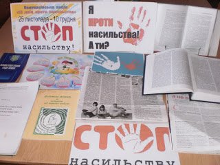 Бібліотеки ліцею приєдналися до заходів Всеукраїнської акції «16 днів проти насильства». В книгозбірні організовано виставку-заклик «Стоп насильству» , де зібрано багато книг, фото, публікацій з періодичних видань присвячених актуальним для українського суспільства проблемам подолання насильства в сім’ї, забезпечення рівних прав жінок та чоловіків, недопущення випадків насильства щодо дітей та підлітків.