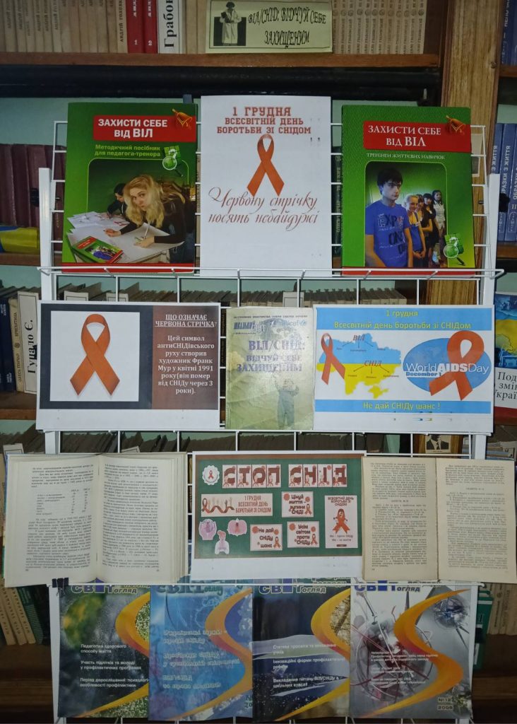 У бібліотеці Андріївського ліцею №2 оформлено тематичну виставку, присвячену Всесвітньому дню боротьби зі СНІДом.