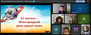 З нагоди святкування Міжнародного дня рідної мови 21 лютого зав. бібліотекою для 5 класу була проведена подорож країною мови “Кожному миле його слово рідне”. Учні читали вірші про мову, брали участь у вікторині.