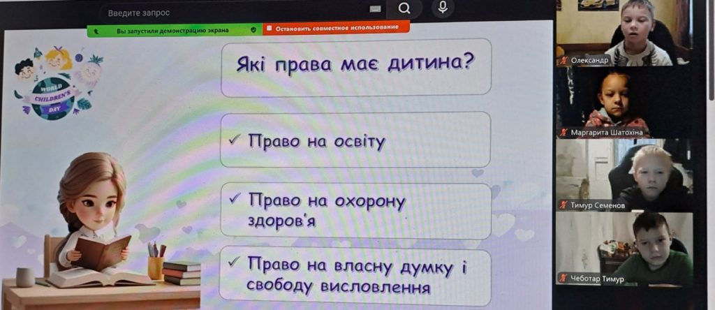 З цієї нагоди в 1–11 класах були проведені тематичні заходи, спрямовані на привернення уваги до прав, свобод і потреб дітей. Учні взяли участь у бесідах, творчих заняттях, перегляді пізнавальних матеріалів та інтерактивних вправах, які допомогли їм усвідомити важливість дотримання прав кожної дитини та відповідального ставлення до оточення.