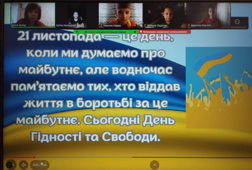 Під час заходу учні дізналися про значення Дня Гідності та Свободи для нашої держави, поговорили про мужність і незламність українського народу, переглянули пізнавальні матеріали та взяли участь у творчих завданнях. Діти висловлювали свої думки про те, що означають для них свобода, гідність та патріотизм, а також обговорили, чому важливо пам’ятати події, які змінили хід нашої історії.