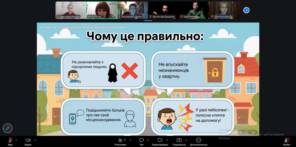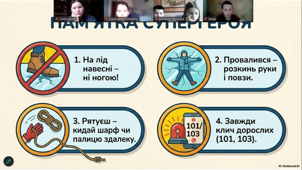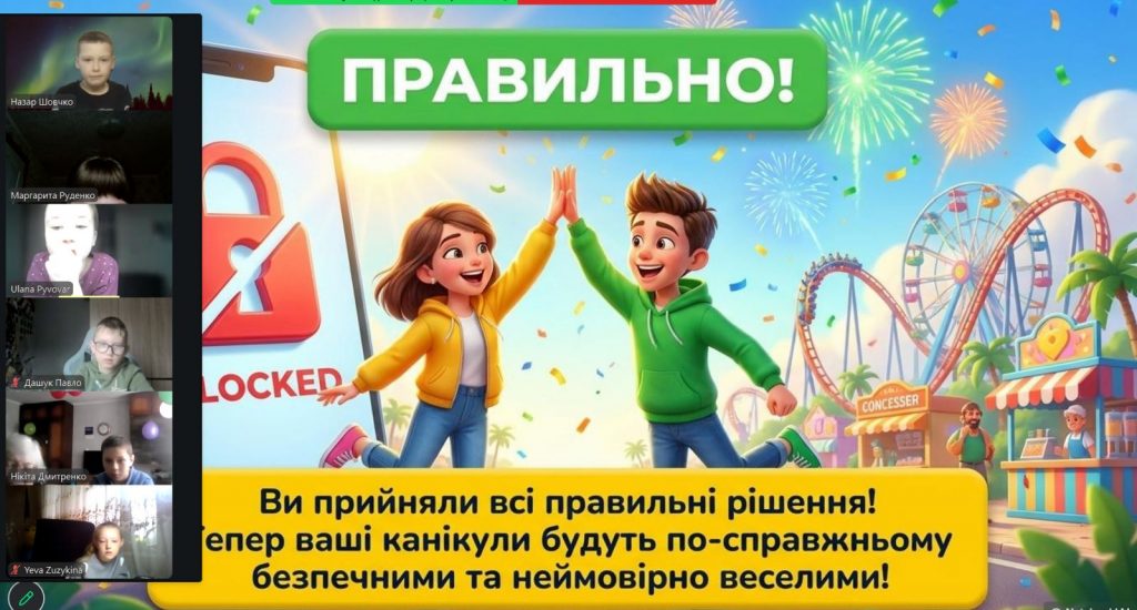 Особливу зацікавленість в учнів 5–8 класів викликала інтерактивна презентація з яскравими коміксами, які допомогли у доступній формі засвоїти життєво важливі правила безпеки. Старшокласники активно долучалися до обговорень, ставили запитання та аналізували можливі ризиковані ситуації.